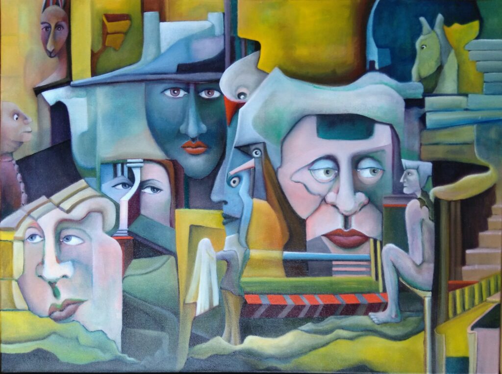 “Rokjes en Ruitjes – olieverf op doek – 41×51 cm – Els Mulder