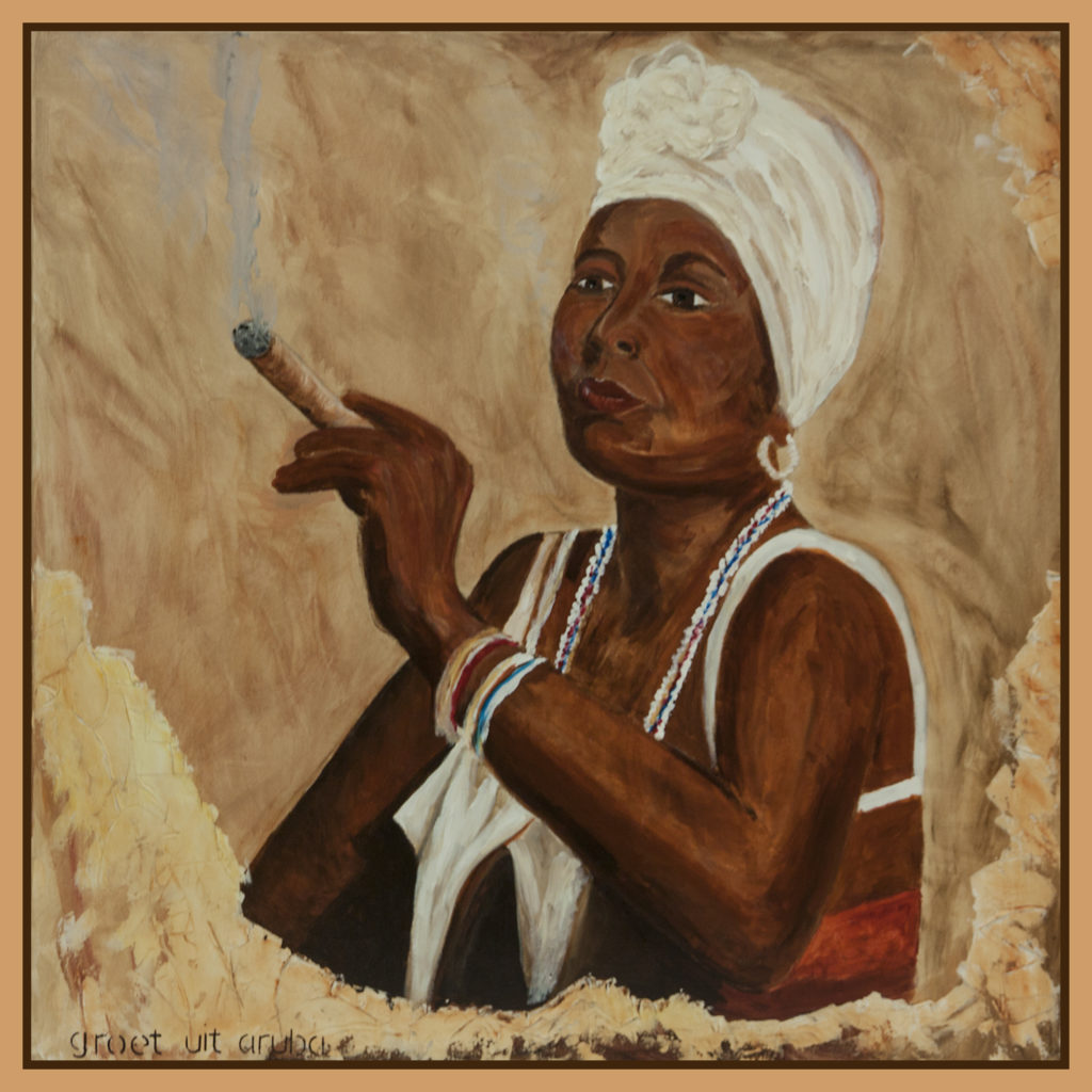 Dame uit Cuba – acryl op doek – Sylvia Melssen – 120×120 cm met lijst