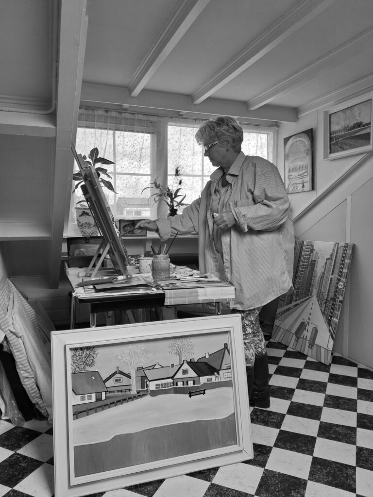 Zij is autodidact en schildert door goed te kijken en vanuit haar gevoel maakt zij daar haar eigen interpretatie van.