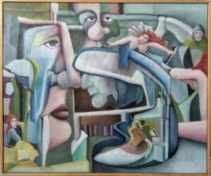 Afb.1: “Vlekfantasie in blauw” – olieverf op doek 50×60 cm